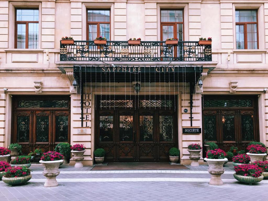 Отель Sapphire City с бесплатным W-iFi и рестораном находится в центре Баку на Площади фонтанов. Прогулка до Девичьей башни занимает 10 минут.