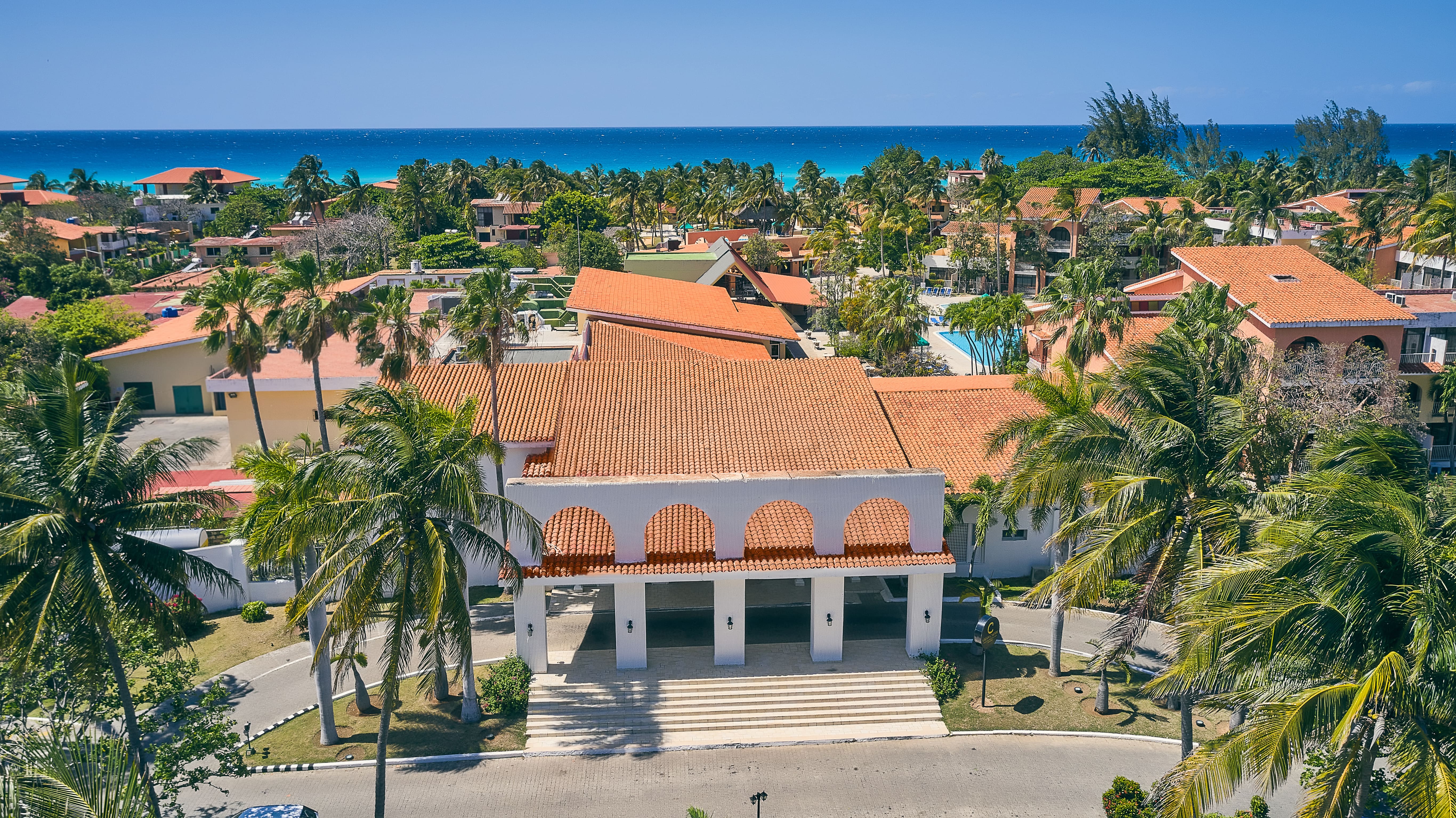 в 140 км от Гаваны, в 25 км от аэропорта Варадеро, в курортном городе Варадеро, на первой линии.