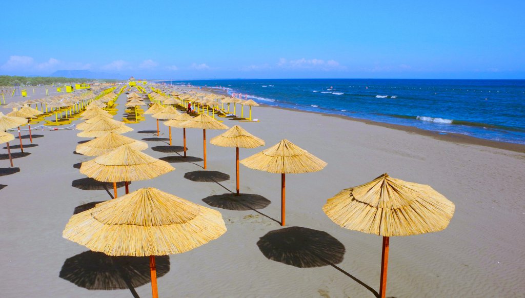 Пляжи курорта уникальны, они покрыты черным песком. Пляж Ульциня широкий и имеет протяженность 24 км. Песок на пляже насыщен солями и йодом, поэтому он считается целебным.