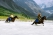 День 7. | Подъем на перевал – одно из серьезных испытаний. Но все трудности с лихвой компенсируются увиденной панорамой: белоснежная красавица Белуха, молочные воды озера Аккем, крошечное малахитовое зеркальце Озера Духов, многоцветная долина ручья Ярлу, царство камня и буйство красок альпийских лугов. На перевале обычно лежит снег. Перевал обозначен культовой каменной пирамидой – обо. Спуск к поляне пеший, коней ведем в поводу. В пути 7-8 часов. |